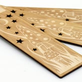 We produce personalized wooden advertising products decorated with laser engraving and/or UV printing, such as:
