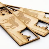 Our offer includes wooden/metal/plastic key rings with personalized engraving